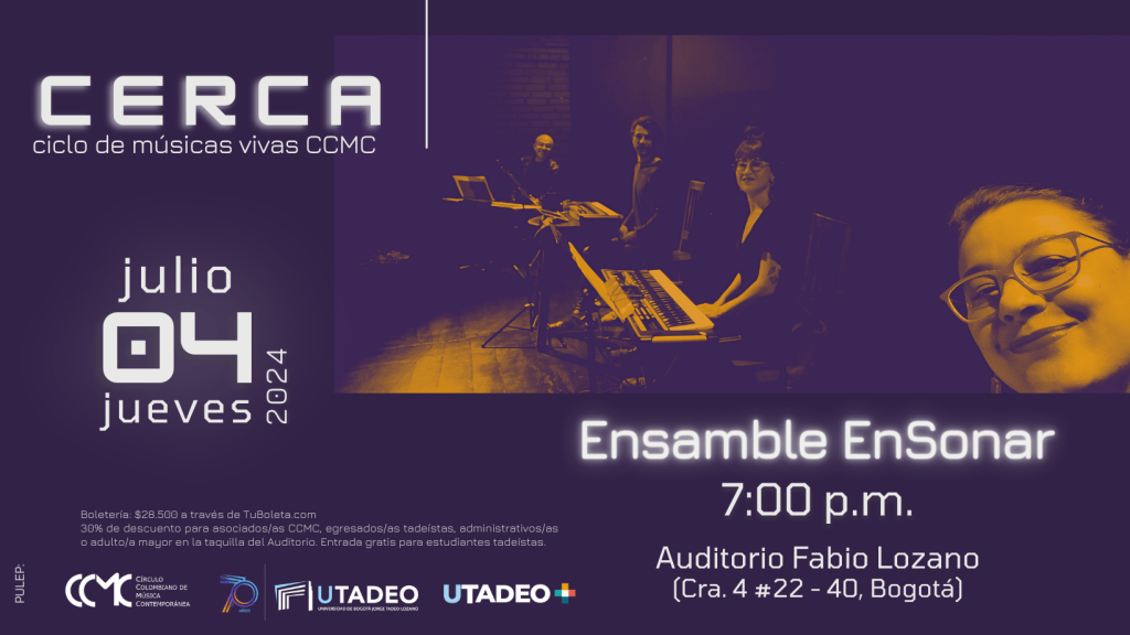 Jueves, 04 de julio | CERCA – ciclo de músicas vivas del Círculo Colombiano de Música Contemporánea | Auditorio Fabio Lozano | 7:00 p.m. | Bogotá, Colombia.