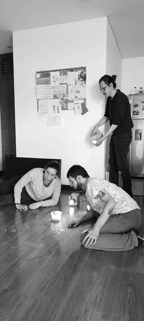 Juliana Gaona (desde San Diego, E.U.A.), Violeta García (desde Buenos Aires, Argentina), Samanta García, María A. Valencia y Melissa Vargas (desde Bogotá, Colombia) estuvimos intercambiando durante dos semanas video-cartas improvisadas, preguntas y respuestas llenas de afectos, sonidos y vivencias de nuestras cuarentenas. Luego de esa conversación hicimos micropiezas que convertimos poco a poco en esta video-carta colectiva que hoy está visitando sus orillas.