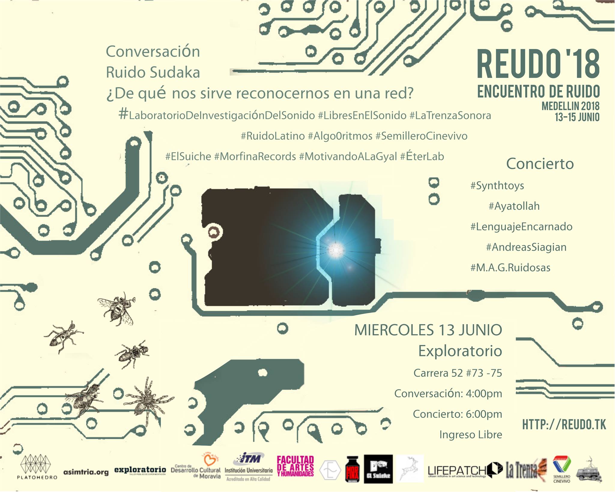 Participaciรณn en REUDO ’18 | Encuentro de Ruido en Medellรญn, Colombia | Conversatorio Ruido Sudaka y Taller de improvisaciรณn libre en Puerto Interactivo MORAVIA.